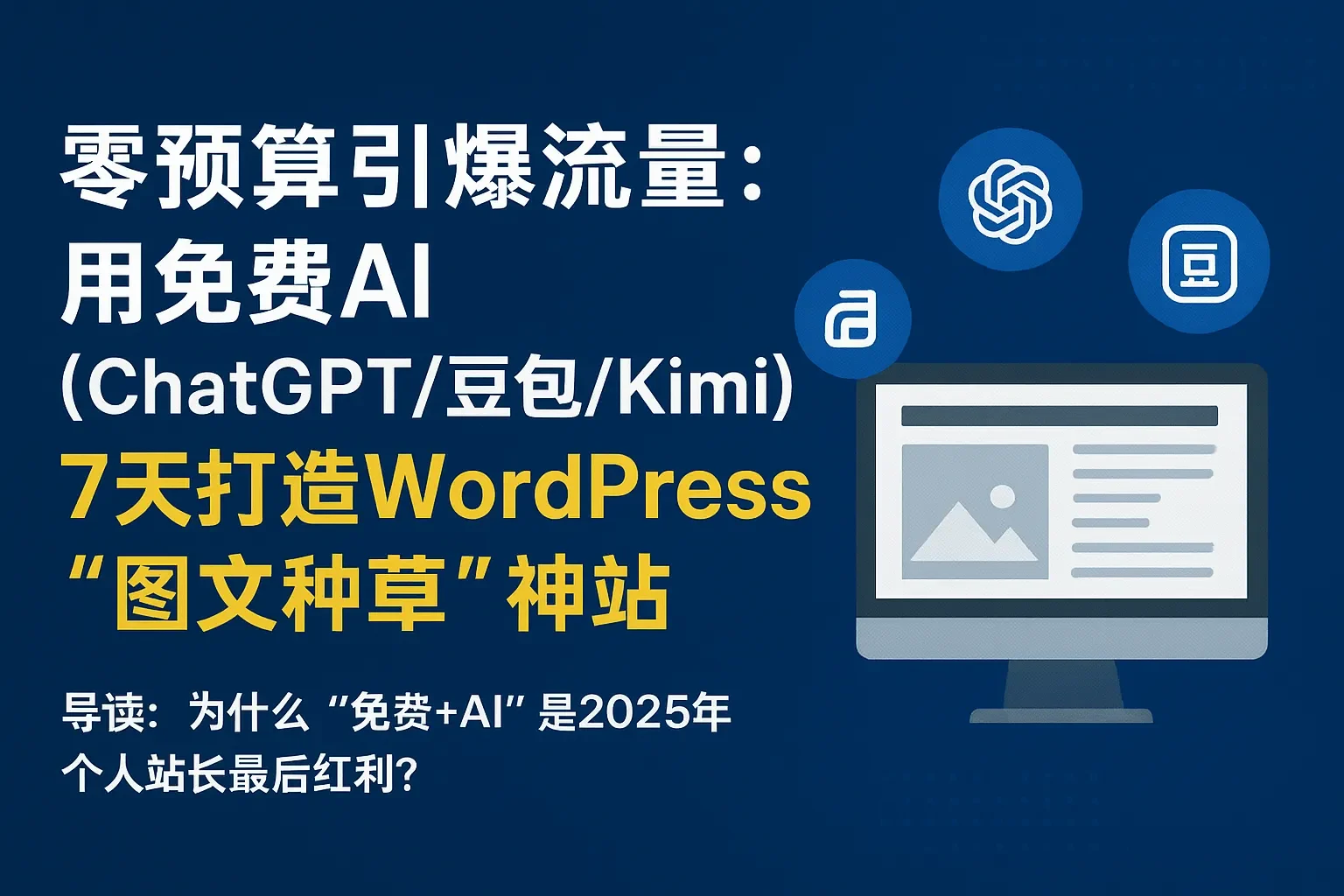 零预算引爆流量:用免费AI(ChatGPT/豆包/Kimi)7天打造WordPress“图文种草”神站导读:为什么“免费+AI”是2025年个人站长最后…